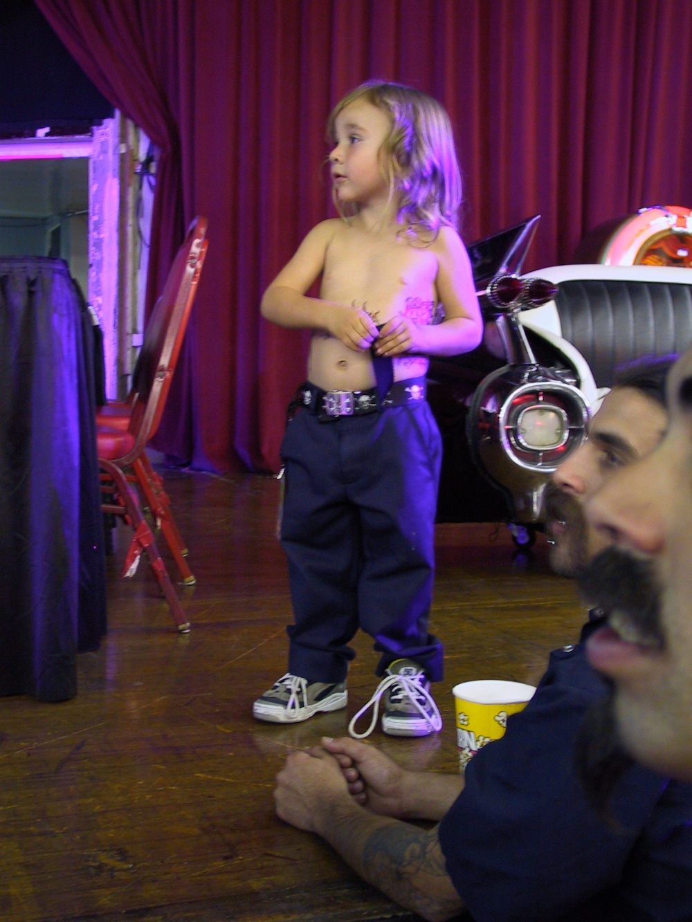 Inked and poked. A show about pain. My only purchase was a lighter that is shaped like a cigarette. Not that I use it, just things that are juxtaposed always intrigue me. $4 bucks. Guess I need to start smoking. A baby in a skull and cross bones shirt is always trouble. A lot of the girls looked like the “Sinner” girls. All that and there was even a wedding. Of course their wedding song was “Under my Thumb.”