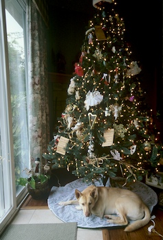 So that was the holidays. And that is a photo of The Americana on a quiet night before the holiday storm. Also Floyd the dog hates sleeping on anything cold or hard so he would crawl under my parents Christmas tree to take advantage of the skirt.