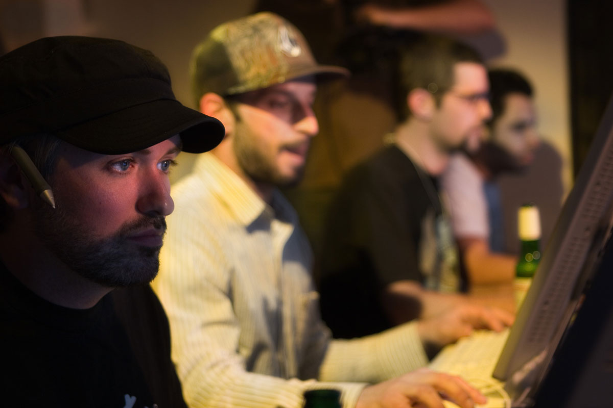 That picture from the Graphic Design competition is really cool. With the first guy, his eyes are lit up by the computer screen from under his dark visor and the other contestants are in the light and blurred. Very nice.