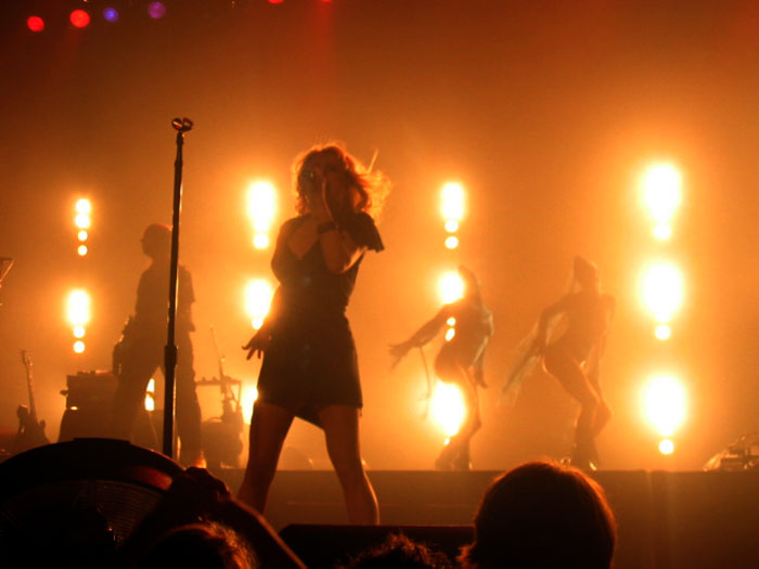 Three weeks ago I was sitting at my desk and saw in the L.A. Weekly that Goldfrapp was going to be playing The Wiltern. I love me some Goldfrapp. So I blurted out “Shit! Goldfrapp’s coming to town!” Little did I know Peter, who sits across from me, also likes Goldfrapp so he was into going too. He had to talk his wife out of going because she’s pregnant. It’s his child, I had to check. So I bought a ticket online but he wanted to beat the Ticketmaster charges and decided to do the box office thing which went horribly wrong and he ended up buying it through Ticketmaster anyway. Stupid Ticketmaster. I really can’t think of a company that people hate more than them. A lot of companies you can just go to other brands or products. Nope, not with this evil cancerous business. I didn’t even get my ticket until the day of the show because they’re morons. Anyway, not what this is about.