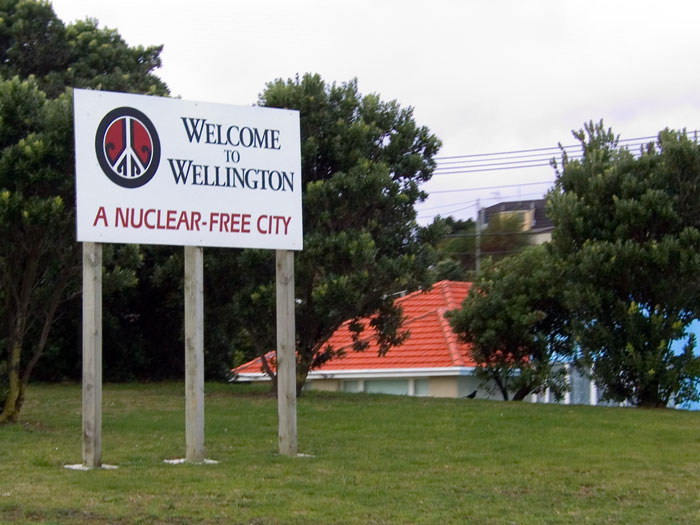 Leaving the Wellington airport you get a glimpse into the New Zealand state of mind. On the back I think it should say “…yeah but our allies are packin’ heat.” Wellington’s probably not as nuclear free as they’d like to be. I’d bet more than a few nuclear subs have meandered through Cook Strait. Above are the semaphore codes showing N and D for nuclear disarmament. That’s what the peace symbol was based on. The designer, Gerald Holtom, holds no copyright on his design. The hippie that he is.