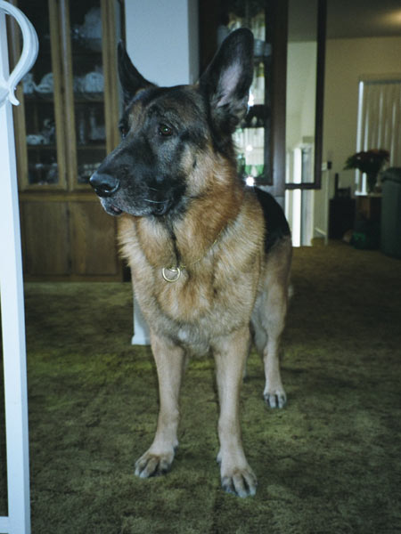 For Thanksgiving I went to my Aunt and Uncle’s. That’s not my Aunt or my Uncle below, but it is “Nero von der something german yadda yadda yadda…” My cousin breeds top of the line Shepherds, and was taking care of a friend’s while he was away on business. He’s the number one Schutzhund in the United States and is worth over $150,000 dollars! Holy Crap man! 150K!! Ever petted a $150,000 dollar dog? I have. That’s nuts.