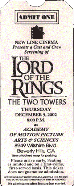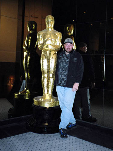 Out of the blue New Line called me and said they were having a cast and crew screening for The Two Towers and got my name from Weta. Um, ok, cool, I’ll be there. “Man I could sell my guest ticket for a bundle”, was my first thought. The Academy gets all freaked out when you break out a camera. The guard wanted assurances that I wasn’t going to publish the image in any way. Does this count? Here I am doing my best “Lord of the Dance” stance with the big Oscar. Check out those blue flame shoes. Another uncomfortable dork pose.