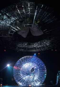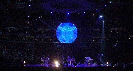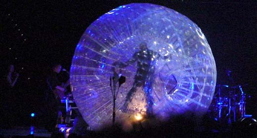 Peter Gabriel at the Staples Center. 16 years between shows is way to long. Last time was at the L.A. Forum in 1986 on the “So” tour. During “Growing Up” a Zorb [LINK] was lowered to the ground, Peter was underground and came up underneath it and into its center. Then he wheeled it out on the circular stage and ran around the stage while singing. He didn’t have any water in his Zorb, and I didn’t have 15,000 people cheering me on [LINK]. No one in this band has any hair left. Setlist for tonight: Here Comes The Flood – Darkness – Red Rain – Secret World – Shock The Monkey – Sky Blue – Downside Up – The Barry Williams Show – More Than This – Mercy Street – Digging In The Dirt – Growing Up – Animal Nation – Solsbury Hill – Sledgehammer – Signal To Noise. Encores 1: In Your Eyes. Encore 2: Family Snapshot – Father Son. Saw Brooke Shields too. Speaking of which, I saw Tommy Lee this week and the little dancing midget guy from “Twin Peaks”.
