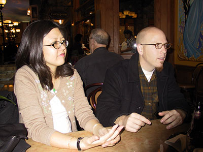 The dinner stop was in Mojave. The choice was either Carl’s Jr. or Wendy’s. My choice would have been of course, Carl’s. I love Carl’s, but as the voting slid towards Wendy’s I started having to rethink my dinner choices. I forgot how crappy Wendy’s really is. Blech. That square triple burger is enough to make me sick looking at the photo. It’s like a cinderblock of meat on bread. Jill deciding, Kenji decided, Sarah telling Kenji what he’s decided. I choked down a chicken sandwich and quite happily enjoyed the chocolate frosty. Ok, so those are good. Numbered dinners suck. “I’ll have the #7”. That’s lame. Have you ever done the math on those things? Most of the time you save about a quarter. Michelle came running inside freaking out that the buses were leaving. So we all scurried back. Nothing worse than being stuck in Mojave.