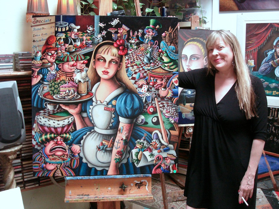 Did a quick visit to the Santa Fe Studios today. I went over there hungry so I didn’t stay long. Mostly the same people, so didn’t see much that was new. Popped in to see Jett and she’s been really busy with a few Alice in Wonderland pieces. Fun painting to look at. She’s gotten way too expensive for me, so I just take pictures now. OK, gotta go, hungry.