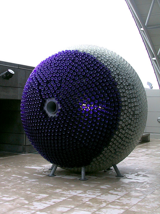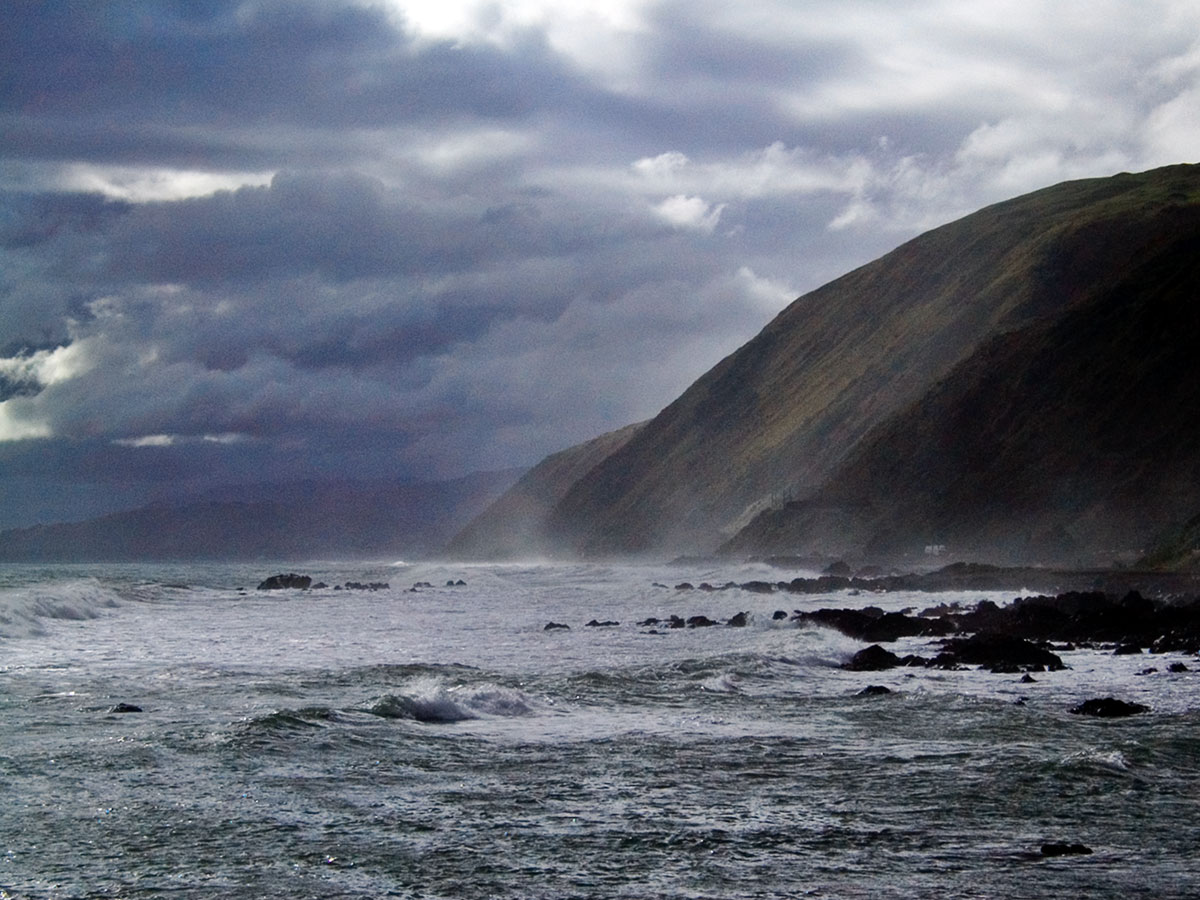 My first official New Zealand shot. I can now say that I brought to many pairs of shorts to New Zealand. Even funnier is the notion that I brought a swimsuit. Who am I kidding? Look at that. That’s penguin weather. I ventured out to the west coast of NZ today to see some real landscape. About 30 minutes north I hit this stretch of coastline that was getting beat up. Imagine your hands freezing and your eyes drying out from the wind. I found a cemetery on the way back and was amazed at how well kept every grave was. After I got back to Wellington I walked around the wharf area and over to the Te Papa [LINK] museum and checked out some of the installations. Including a rooftop one of a eyeball made of bottles.