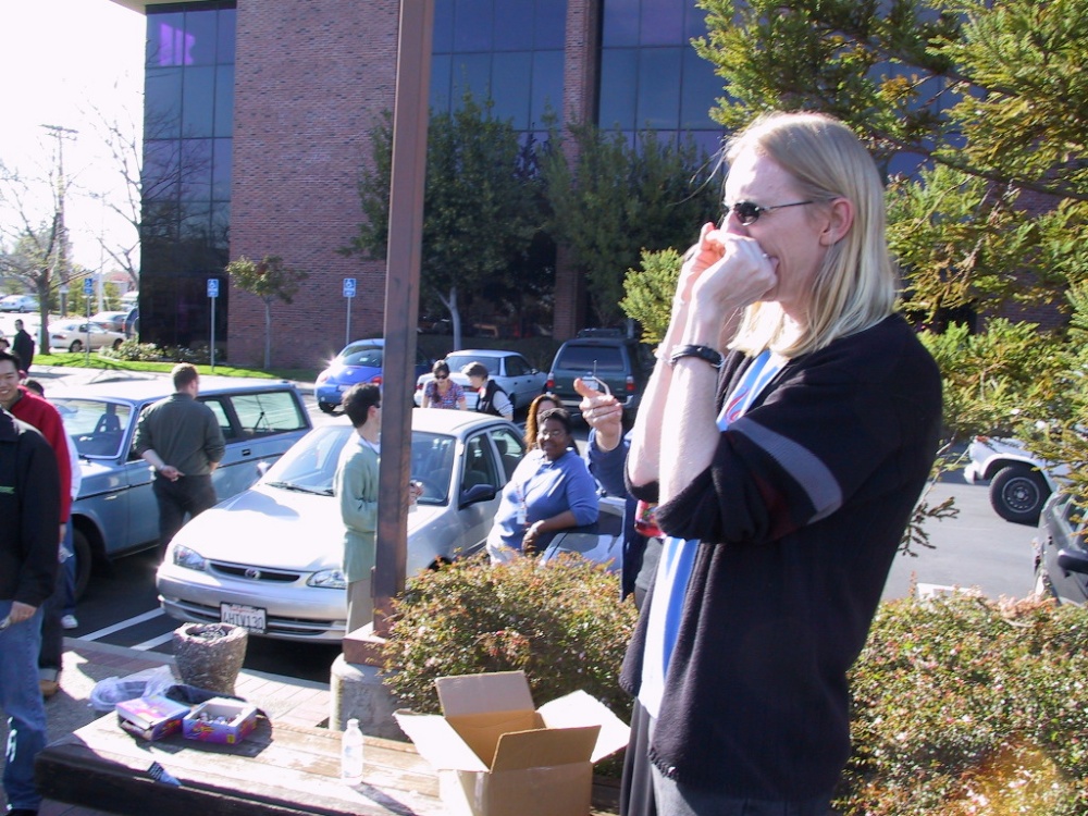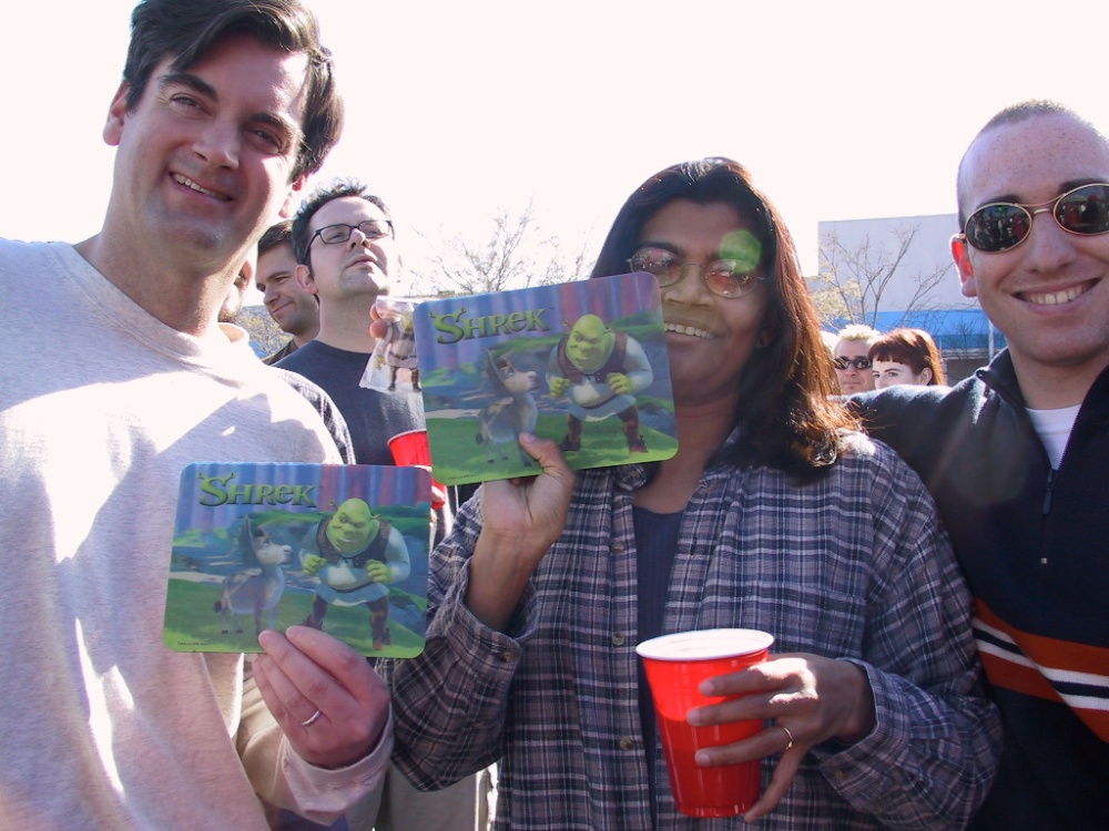 A wrap party PDI/DreamWorks style. In the parking lot. They really now how to splurge on us after having sweated through two years of work. Factoid: The Shrek Crew Jackets… don’t say crew on them. Thanks a lot.