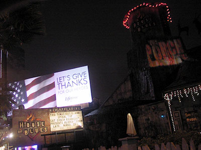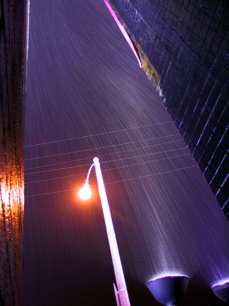 Tonight was Tenacious D and Spinal Tap at the House of Blues. Just getting there turned into an interesting chore. It started raining sooooo hard that we couldn’t get out of the parking structure. I think this is my new favorite photo. You can actually see the rain twisting in the wind as it streaks down between the buildings. Cars on La Cienega were skidding downhill trying to get up the steep part near Sunset. Thundercracks too. No wonder the car wash was closed earlier today. Now it all makes since. The House of Blues never lets you bring cameras, so here’s the marquee. The show? Hilarious. Spinal Tap came out and opened with Heavy Duty, they also did Stonehenge, Christmas with the Devil, Listen to the Flower People, etc… Pretty much all the Tap favorites. They even threw in a bit of Jazz Odyssey. Christopher Guest, Michael McKeon, and Harry Shearer plus drummer #14. Unlucky drummer #13 didn’t last very long according to them. Then came the “D”. Amazing. Jack Black is so funny. They opened with the theme from “Flash Gordon” by Queen and went straight into “Wonder Boy”. They also did “Kyle Took a Bullet for Me” They also did a short tribute to Ronnie James Dio and the song about the road. They even showed the video of Jack Black trying to hand out blowjobs on the street only to get picked up by Kyle. The whole place was on the floor laughing after that. For the encore, Spinal Tap came back out, along with many others, and did “Big Bottom”. Twenty people were on stage, 11 of them playing bass. Good stuff.