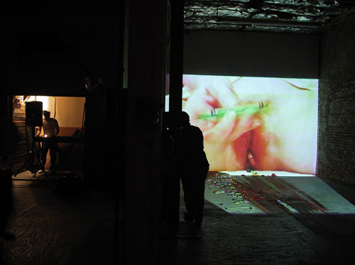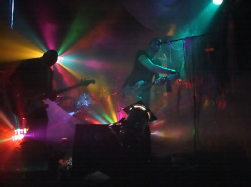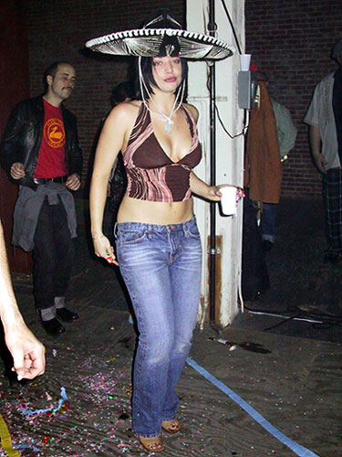 In the scariest part of downtown L.A., this underground art exhibit and musical party was pretty fun. All over L.A. today there were 4:20 events. “Anyone” took the stage at about 11:30 and put in a great show. Sometimes the smoke got so thick the band disappeared into the lights. I got someone into the show for free and he offered me some “herb” for the favor. I politely declined. That’s a DJ on left, he sucked. So after the show they tie this guy up and pull him up to the ceiling by his feet. Then they start beating him with sticks! Not until candy started falling all over did I realize he was a human pinata. Whew.