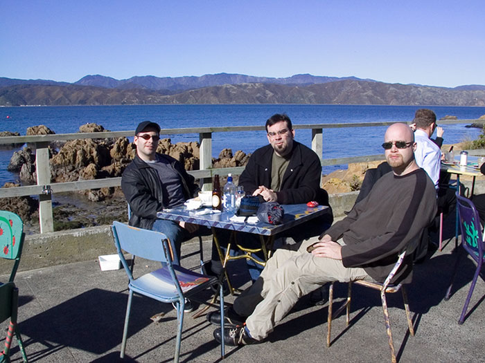 All I hear them saying is… “Cunningham, have a seat, we need to talk”. You’d think one of them could muster a smile. Eating outside at the Chocolate Fish Cafe on a day without a single cloud. The waiters have to run across the street to bring you your food. So just how far south is New Zealand? This was shot at 12:30pm and look at the shadows on the ground. It’s that far south.