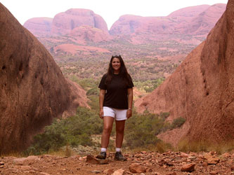 We woke up at 4:00am this morning to catch the sunrise at Uluru. Turned into a bust as the sun never really came out behind the clouds. Jill’s face pretty much says it all. “I got up at what hour for this?” I laughed. We were also headed over to the Olgas. The “other” rocks. Not a lot of people realize there are lots of other rocks, besides Uluru, in the area. We headed over to the Olgas for a morning hike. In some ways they’re more beautiful. Not as sacred to the Aborigines, but that’s their history. We walked through a place called the valley of the winds and to a hilltop between two of the heads. We got out of there just before it started to get hot and stopped at a lookout to view the the whole formation. Next stop, Cairns.