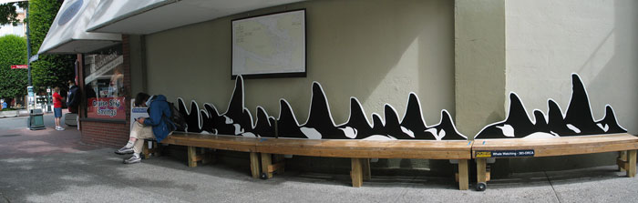 I had booked a boat to go out to see the Orcas on Sunday. We left Victoria at 9am and headed out to the west coast of San Juan Island and caught up with the L-Pad of Orcas and they were breaching right and left when we arrived. It was an unbelievable display. Probably about 30-40 breaches within 15 minutes of arriving. This was the exact spot I saw J-Pod last time I was here. We watched L-Pod for a bit and then headed north and caught up to J-Pod which was a few miles north. They had gone into their resting mode where they all lined up and would dive for a bit, basically sleeping. They’d all surface together so we’d see about 20 whales at a time come up for air. Ruffles is still around and I got to see him surface a few times while we waited for L-Pod to catch up with us. All in all a great day of seeing the Orcas. Got a few good video caps of the action.