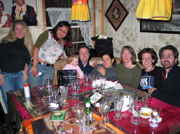 Wetafx L.A. Tonight a rogue group of former Weta worker bees met at Paru’s in L.A. for dinner. Most of the discussion was post Lord of the Rings travel adventures, why we don’t want to go back, 5 year plans, who’s working where, who’s looking, and the mid meal diaper change. I drove around for 20 minutes looking for parking and was about to give up when the spot five feet from the door opened up. Nice. Laura’s disembodied hand is creepin’ me out. It’s pinned to her shirt.