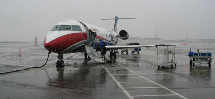 Unbelievably, LAX was packed at 6:00 in the morning, Christmas Day. Who the hell travels Christmas Day?! A lot. If I had to check baggage I wouldn’t have made my flight. Flew through Salt Lake, where it was starting to snow, and then on to Boise and arrived about 11:20. I fell asleep about 10 minutes before landing and nearly shot through the roof when the plane landed with a thud. Scared me to death. The one time I manage to fall asleep on a plane that happens. You know you’re on a small plane when it has windshield wipers. [VIDEO LINK]