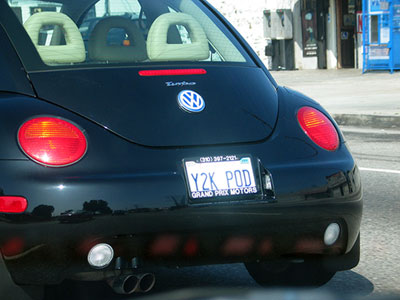 Ouch. Time for a new plate buddy. Buying a car for the Y2K bug? Wouldn’t a bike have been better? I suppose it was funny for about a year.